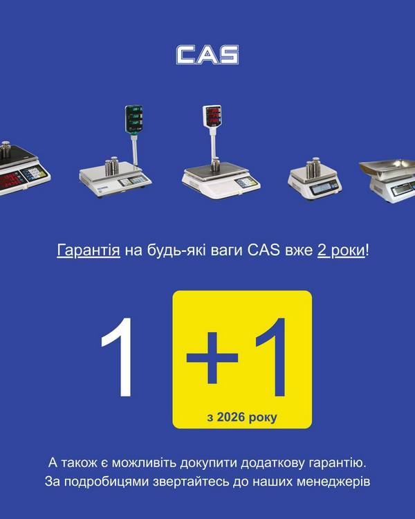 Хороші новорічні новини від CAS — гарантія на ваги збільшена до 2 років!